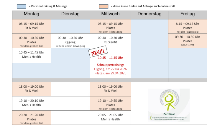Tarife/Kursgebühren (Kurse, Personal Training, Firmenfitness)